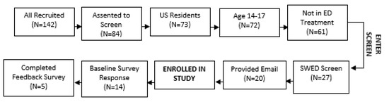 - Cavazos-Rehg, P.; Min, C.; Fitzsimmons-Craft, E.E.; Savoy, B.; Kaiser, N.; Riordan, R.; Krauss, M.; Costello, S.; Wilfley, D. Parental consent: A potential barrier for underage teens’ participation in an mHealth mental health intervention. Internet Interv. 2020, 21, 100328. [Google Scholar] [CrossRef] [PubMed]