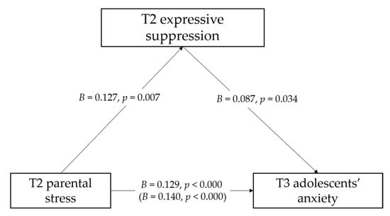 | T2 parental stress → T3 adolescents’ anxiety | 0.140 | 0.031 | <0.000 |