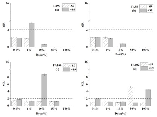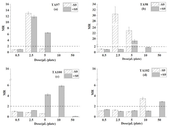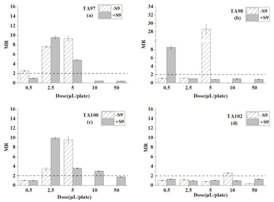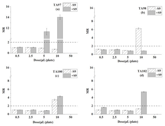 4.2. Mutagenicity Change by S9 Liver Particles Metabolism