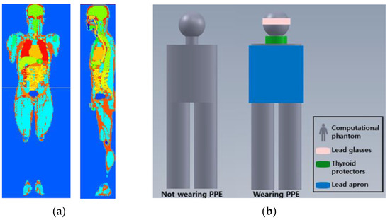 - Park, S.H.; Lee, J.K.; Lee, C. Dose conversion coefficients calculated using tomographic phantom, KTMAN-2, for X-ray examination of cardiac catheterisation. Radiat. Prot. Dosim. 2007, 128, 351–358. [Google Scholar] [CrossRef]