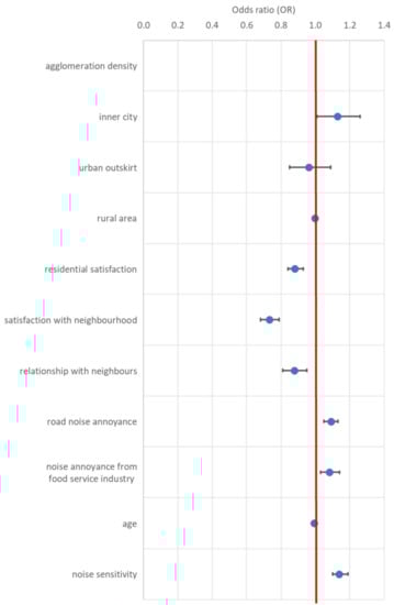 | Noise annoyance from food service industry | 0.082 | 0.0251 | 10.63 | <0.001 | 1.085 | 1.03 | 1.14 |