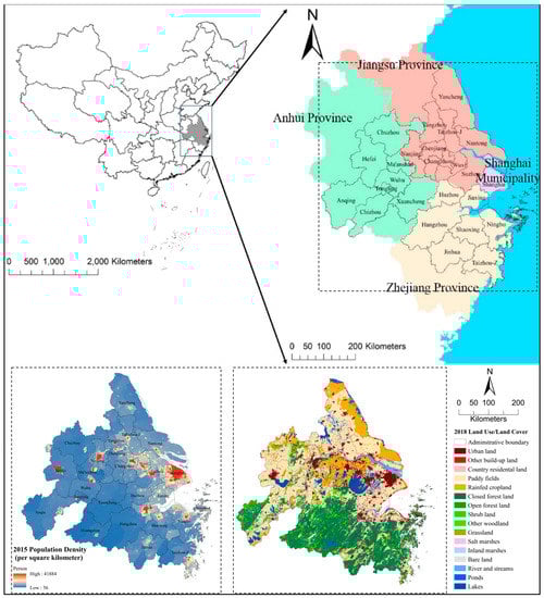 - Li, Z.; Sun, Z.; Tian, Y.; Zhong, J.; Yang, W. Impact of Land Use/Cover Change on Yangtze River Delta Urban Agglomeration Ecosystem Services Value: Temporal-Spatial Patterns and Cold/Hot Spots Ecosystem Services Value Change Brought by Urbanization. Int. J. Environ. Res. Public Health 2019, 16, 123. [Google Scholar] [CrossRef] [PubMed] [Green Version]