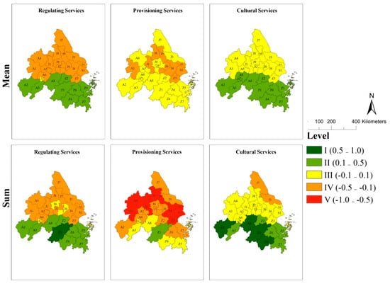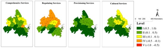 3.4.1. Assess City ES Supply–Demand (Mis)Matches Based on the ES Amount Index