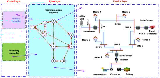 - Ding, L.; Han, Q.-L.; Zhang, X.-M. Distributed Secondary Control for Active Power Sharing and Frequency Regulation in Islanded Microgrids Using an Event-Triggered Communication Mechanism. IEEE Trans. Ind. Inform. 2019, 15, 3910–3922. [Google Scholar] [CrossRef]