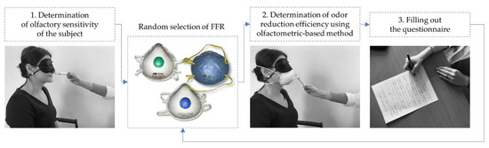 The proposed methodology for assessing odor reduction by using FFRs included three stages, shown schematically in Figure 2.