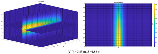 In this case, the infection sources at the measuring position as aforementioned. The 3D velocity field generated by the train-induced wind lead to the spread of a lot of small particles within the aerosol. This modeling aimed to estimate the aerosol spread range but not minute details of aerosol evolution on a centimeter-scale.