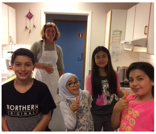 The free school breakfasts were another activity highlighted by all participants as important for well-being. It was described as a forum where pupils, parents, school employees, and the principal could meet informally at the start of the day, providing an opportunity for all participants to have a nice start to their day. In addition to the social activity of meeting others over a meal, the preparation of meals both for breakfast and after-schooltime snacks was emphasized as an important social activity that promoted well-being (Figure 3):