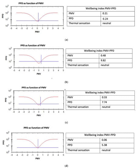 Microclimatic values: PMV = presumed mean value; PPD = presumed percentage of dissatisfied.