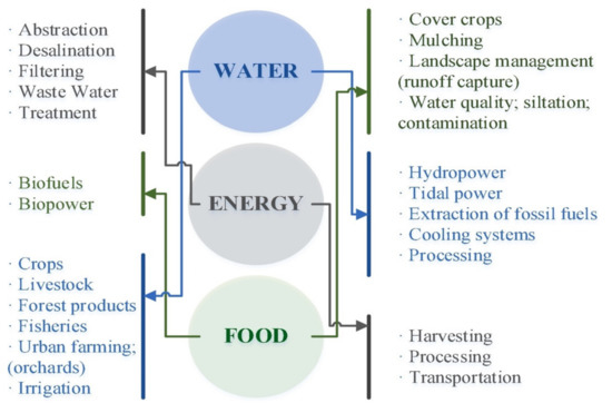 - Abdi, H.; Shahbazitabar, M.; Mohammadi-Ivatloo, B. Food, energy and water nexus: A brief review of definitions, research, and challenges. Inventions 2020, 5, 56. [Google Scholar] [CrossRef]