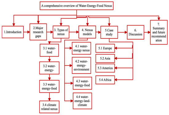 By examining and categorizing current water–energy–food nexus case studies and evaluation methodologies, this article proposed a framework to provide a systemic solution to the receding issue. Therefore, this review aims to contribute to the development of water–energy–food nexus approaches that add value to the field while avoiding duplication of effort. This review has three specific goals: (1) to gain a better understanding of the ongoing case progress; (2) to present current water–energy–food nexus tools and assess their suitability, scope, and degree of necessity in a variety of nexus settings; and finally, (3) to bring the discussion to a close, we should consider the future development of techniques for water–energy–food nexus analysis.