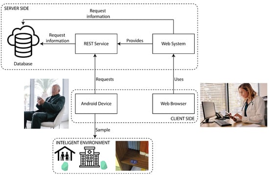 Regarding the web service, it has been designed with the aim of providing information to the caregiver that is responsible for the inhabitant, whether in a nursing home or in a hospital.