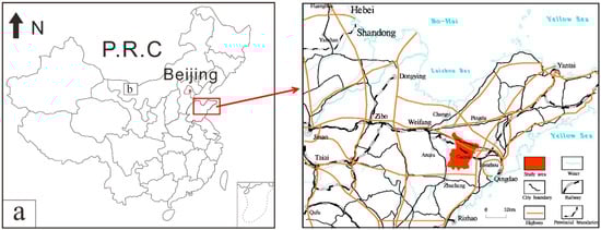 Location map of study area (a) Location of Shandong Peninsula (b) Location of study area.