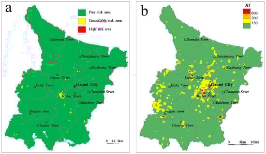 Comprehensive distribution map of study area (a) Comprehensive grade map of ecological risk assessment of HMs in topsoil (b) Spatial distribution map of Potential risk index of HMs in topsoil.