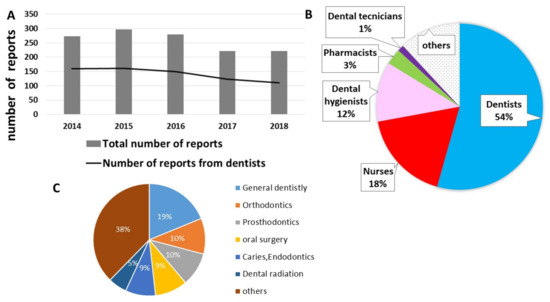 The subjects were classified according to their occupation. The report rate of dentists was aggregated every fiscal year, and the subjects were classified according to the department to which the reporter belongs.