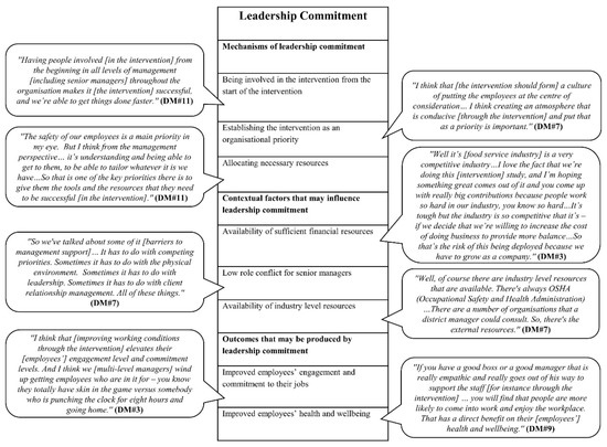 Our data showed that leadership commitment may operate in three ways (i.e., three mechanisms) within the food service industry intervention, as outlined below.
