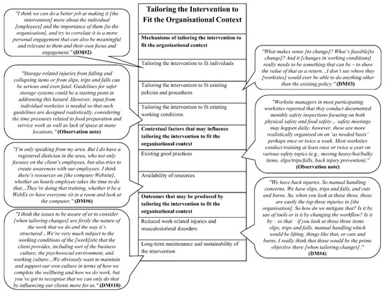 Our analysed data highlighted two contextual factors that may influence tailoring the intervention to fit the organisational context.