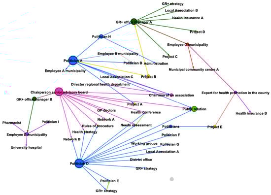 Furthermore, in all activities, both the political committees of the city and the county were included in the strategic planning of the Healthy Region Plus. The fact that actors in collaborative network relations often take more than one role has also been observed in other studies [59]. In a study by Wijenberg et al. [59], the overlapping functions even turned out to be facilitators of collaborative learning in network structures [59].