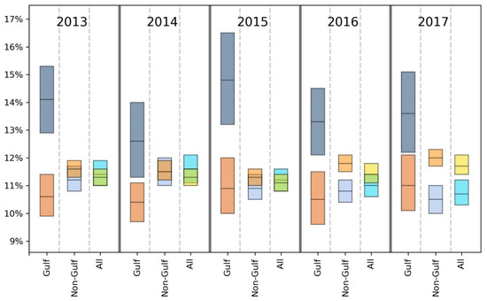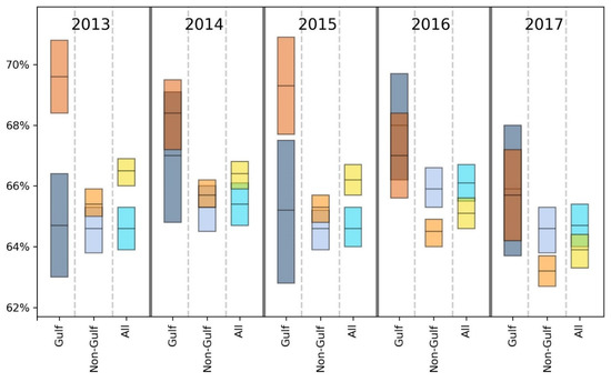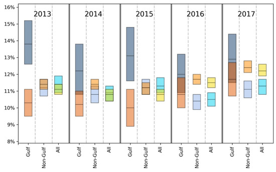 3.4. Effect of Gulf MMSAs on the Coastal vs. Non-Coastal Comparison