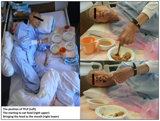 - Fukumura, N. Effect of flat lateral position on oral feeding in severe dysphagia patients-evaluation of swallowing and activities of daily living at discharge from the rehabilitation unit. Gen. Rehabil. 2012, 40, 9. [Google Scholar]