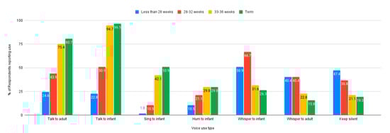 Figure 1 illustrates how types of voice use were reported according to gestational age.