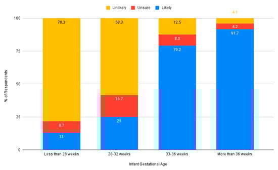 n = 42, 91.3%). Nurses indicated that they would be more likely to advocate for auditory intervention for moderately premature or term infants, compared to very premature infants (see