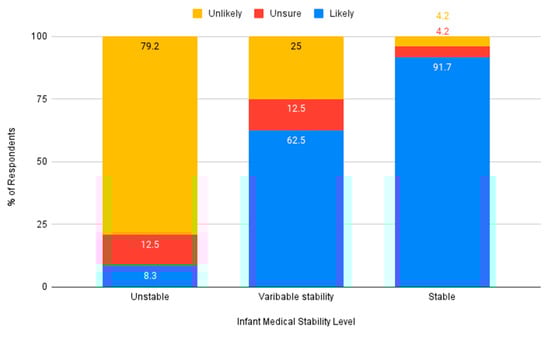 Figure 4). Similarly, respondents indicated they would be more likely to advocate for an auditory intervention for infants who have variable stability or who are stable, and less likely to do so for infants who are medically unstable (see