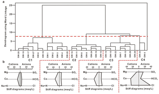 - Güler, C.; Thyne, G.D.; Mccray, J.E.; Turner, A.K. Evaluation of graphical and multivariate statistical methods for classification of water chemistry data. Hydrogeol. J. 2002, 10, 455–474. [Google Scholar] [CrossRef]