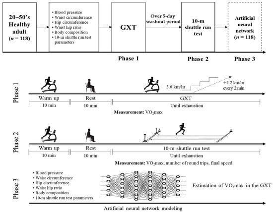Therefore, the present study proposes an ANN-based prediction model for indirect VO2max estimation using a 10 m SRT, which is less spatially constrained than a 20 m SRT. The purpose of our study is to develop estimated ANN modeling of VO2max based multistage 10 m SRT, which is easier to perform than the 20 m SRT, and to compare the performance of the ANN-based prediction model with the previous regression models.