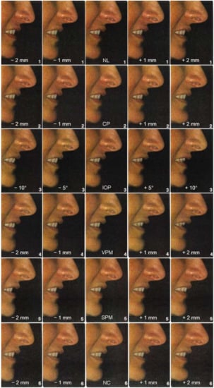 - Soh, J.; Chew, M.T.; Wong, H.B. A comparative assessment of the perception of Chinese facial profile esthetics. Am. J. Orthod. Dentofac. Orthop. 2005, 127, 692–699. [Google Scholar] [CrossRef]