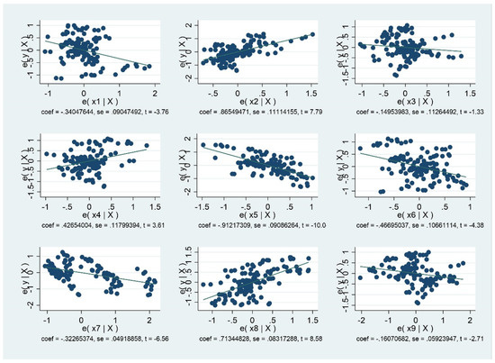 In addition, the two sets of scatter plots with nine variables have the correlation coefficients from the two models described above. From the scatter plots, it is possible to ascertain whether the correlation can be concluded.