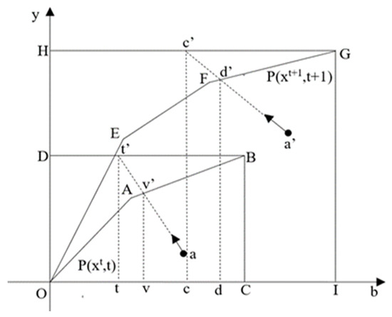 and are actual good output (i.e., gross industrial product value) of industrial sector in region k′ in period t and t + 1 respectively. and represent the unregulated directional distance functions in period t and t + 1 respectively, and and are mix-period unregulated directional distance functions. Similarly, the corresponding regulated directional distance functions can be explained in the same way.