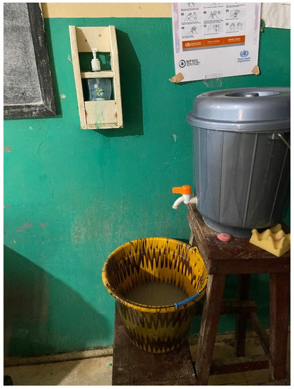 - Abrampah, N.M.; Montgomery, M.; Baller, A.; Ndivo, F.; Gasasira, A.; Cooper, C.; Frescas, R.; Gordon, B.; Syed, S.B. Improving water, sanitation and hygiene in health-care facilities, Liberia. Bull. World Health Organ. 2017, 95, 526. [Google Scholar] [CrossRef]