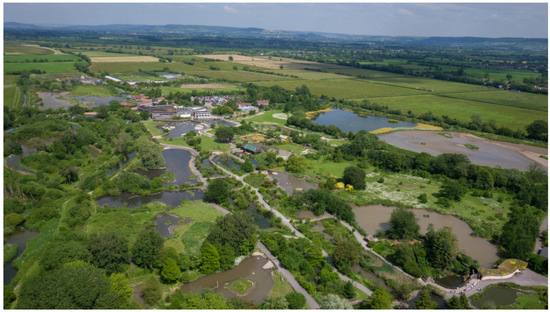 Slimbridge Wetland Centre, Gloucestershire, UK; an example of a wetland centre used in this study. Wetland centres function as both visitor attractions and protected natural areas. The central grounds area (47 ha at Slimbridge) features a visitor centre—including a cafe, an education centre and offices. The adjacent grounds feature a captive wildfowl collection, bird hides and children play areas. The protected natural areas (270 ha at Slimbridge; Site of Special Scientific Interest (SSSI), a Special Protection Area (SPA) and a Ramsar Site) surround the central visitor centre area and grounds. Image: WWT.