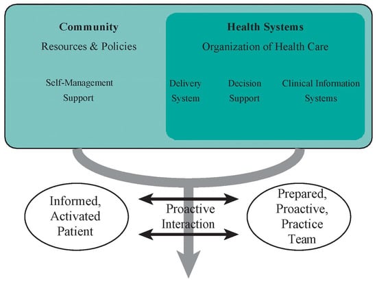 - Barr, V.; Robinson, S.; Marin-Link, B.; Underhill, L.; Dotts, A.; Ravensdale, D.; Salivaras, S. Extended Chronic Care Model (CCM). Hosp. Q. 2003, 7, 73–81. [Google Scholar]