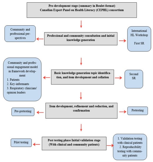- Shum, J.; Poureslami, I.; FitzGerald, J.M. Involvement of patients and professionals in the development and pretesting of an asthma/chronic obstructive pulmonary disease (COPD) health literacy (HL) measurement tool: A Canadian approach. Poster presentation. In Oregon and SW Washington Health Literacy Conference (Enhancing Equity, Improving Health); Legacy Health Literacy Website: Portland, OR, USA, 2018; Available online: https://twitter.com/OurLegacyHealth (accessed on 12 August 2021).
