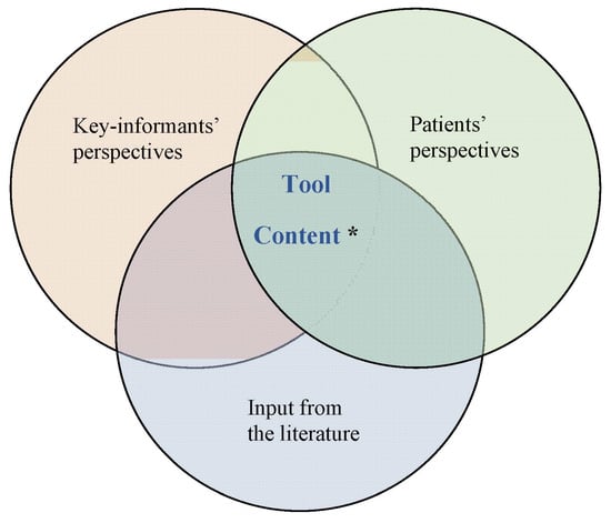 Three main sources for the VAHLT development for conceptualization: key-informants’ perspectives, patients’ perspectives, and input from the literature. The asterisk ‘*’ indicates the common prespectives of patients and key-informants that matched with the literature were selected and applied in the development of our health literacy tool framework.