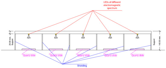 In order to perform parallel exposures under different light wavelengths, a specific device was developed (Figure 2).