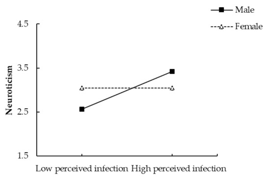 Gender as a moderator for the relationship between perceived infection and neuroticism.
