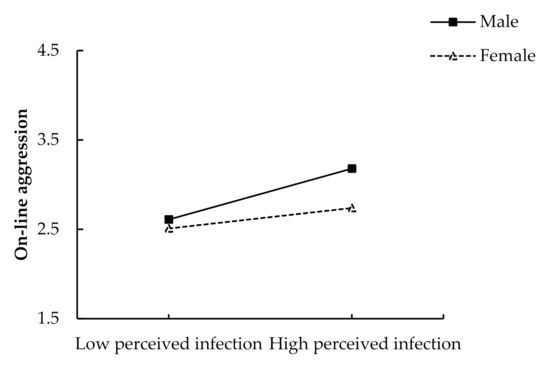 Gender as a moderator for the relationship between perceived infection and on-line aggression.