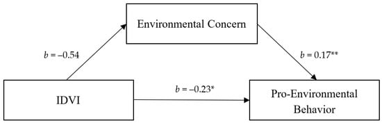 Figure 1 Environmental concern as mediator of the relationship between Infectious Disease Vulnerability Index and pro-environmental behaviors in Study 1.