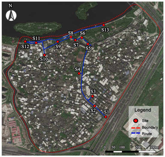 This study selected 13 typical sites of Linpu as experimental areas. The selected sites are further characterized based on plant richness, water landscape, openness, topography, road network, and cultural landscape to understand the impact of landscape elements on stress recovery. The details of these case areas and site attribution are illustrated in Figure 1 and Table 1.