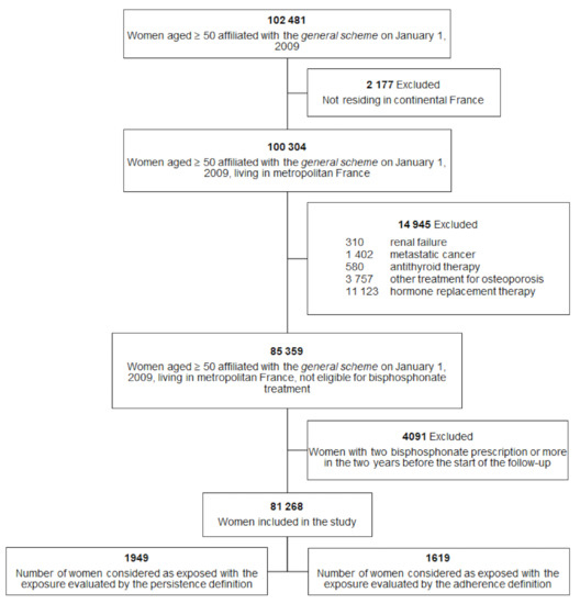 APA StyleBourrion, B., Souty, C., Fournier, L., Vilcu, A.-M., Blanchon, T., Böelle, P.-Y., Hanslik, T., & François, M. (2021). Bisphosphonate Use and Hospitalization for Hip Fractures in Women: An Observational Population-Based Study in France. International Journal of Environmental Research and Public Health, 18(16), 8780. https://doi.org/10.3390/ijerph18168780