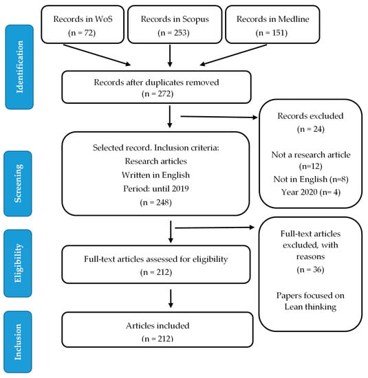 A systematic search following the PRISMA (Preferred Reporting Items for Systematic Reviews and Meta-Analyses) statement was carried out [25]. We used three databases for guaranteeing greater coverage [26]: WoS (Web of Science) core collection, Scopus, and Medline, for its relevance at the medical level. The analysis included research articles [27] published until 2019, written in English and gathered through the next search engine: