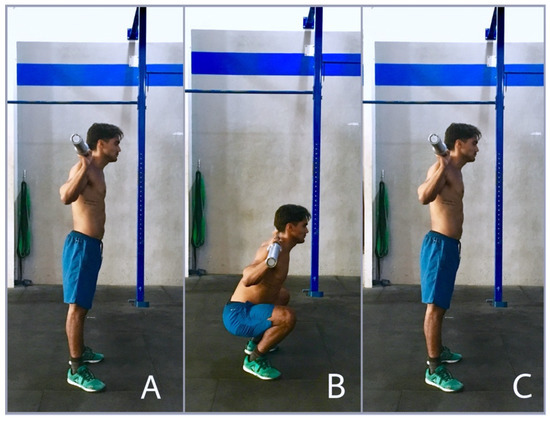 Full squat movement requirements. (A): start position; (B): lowest position; (C): final position.