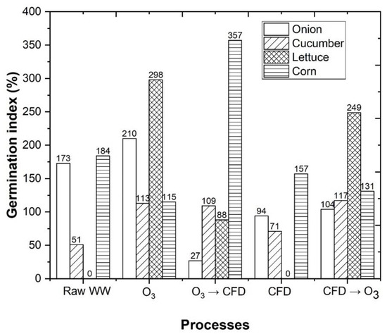 Phytotoxicity tests were performed by germination of onion, cucumber, lettuce and corn seeds (standard species recommended by the US Environmental Protection Agency, the US Food and Drug Administration, and the Organization for Economic Cooperation and Development [32]) and determined by Equation (1) in accordance to Varnero et al. [33] and Tiquia et Tam [34], as follows: