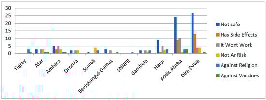 Frequencies of respondents’reasons for not willing to get COVID-19 vaccines across the regions in Ethiopia.