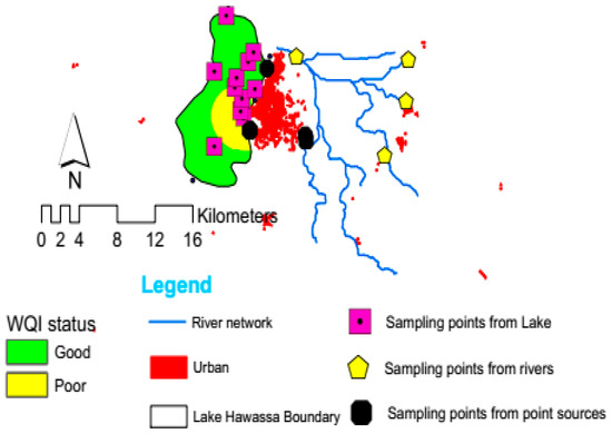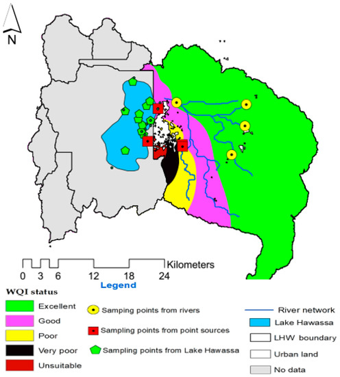 - Teshome, F. Seasonal Water Quality Index and Suitability of the Water Body to Designated Uses at the Eastern Catchment of Lake Hawassa. Environ. Sci. Pollut. Res. 2020, 27, 279–290. [Google Scholar] [CrossRef] [PubMed]