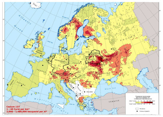 The new map of cesium-137 contamination in Europe in 2020 [52].