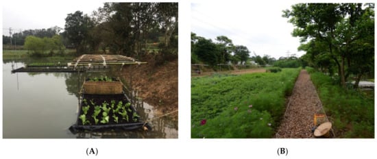 (A) Artificial floating islands located in ponds; (B) food farms situated in vacant lands.