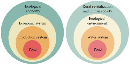 Under the leadership of GCDA, the pond farming system has enhanced the local sense of community. Participant observation suggests that Gaoyuan is undergoing pond-based development reliant on two specific approaches (Figure 4). One sees the pond as the basic production system which lies at the heart of the community’s economic system aimed at the goal of an ecological economy. Another has the pond as the center of the local water system with a major role in maintaining the ecological environment and contributing to the diversity of rural revitalization and human society.
